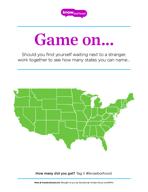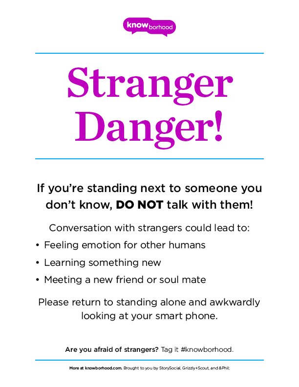 Please be mindful. We encourage all users to affix talking points and conversation starters with easily removable and non-permanent materials. If you are posting somewhere that requires permission, be sure to get it first. The poster assumes full responsibility for the placement and any resulting damage. In short, be kind while trying to help make your neighborhood more friendly.