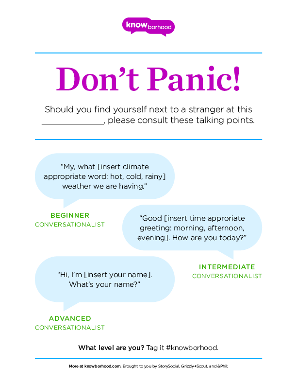 Please be mindful. We encourage all users to affix talking points and conversation starters with easily removable and non-permanent materials. If you are posting somewhere that requires permission, be sure to get it first. The poster assumes full responsibility for the placement and any resulting damage. In short, be kind while trying to help make your neighborhood more friendly.